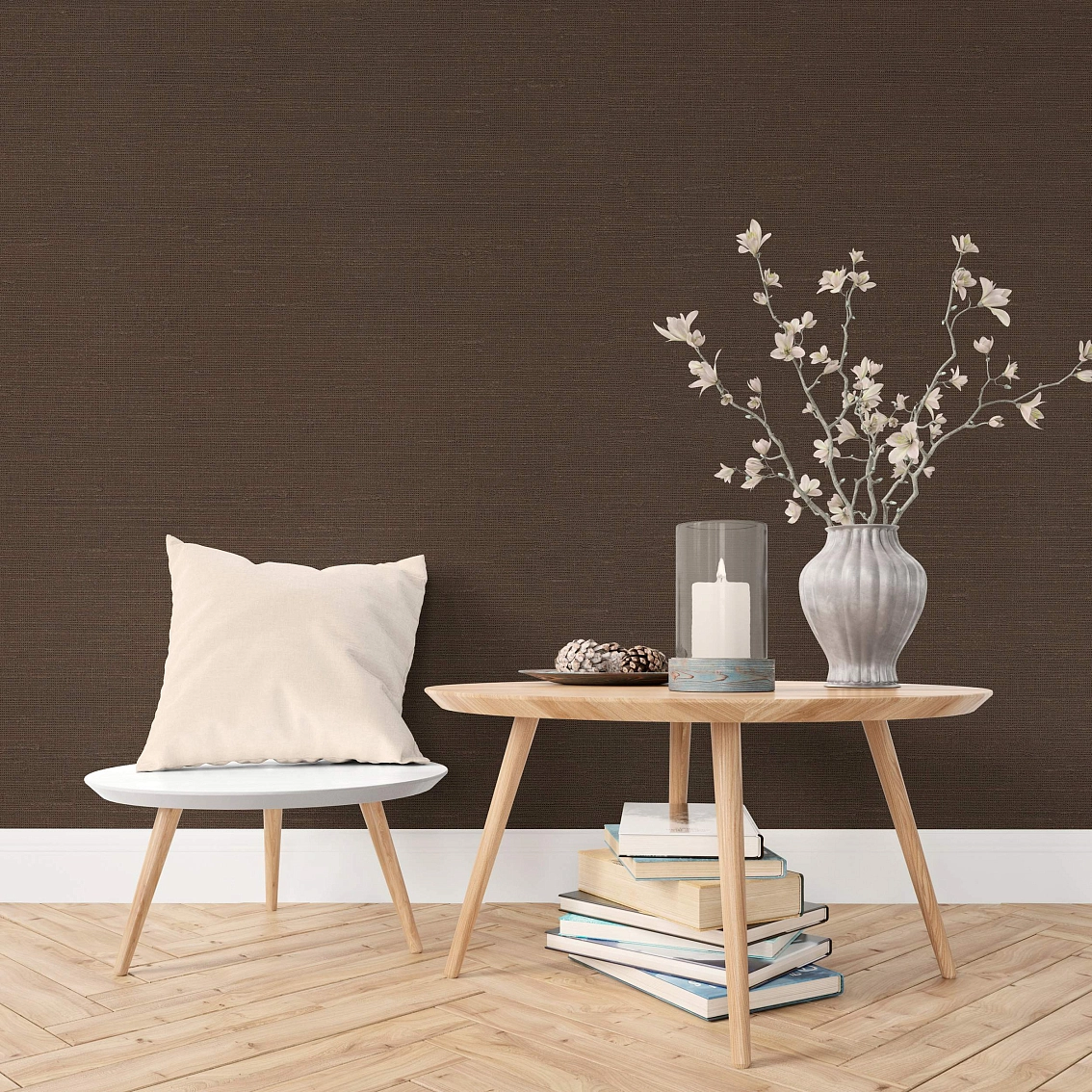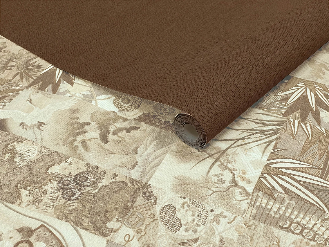 Цвет коричневый придает обоям изысканный и элегантный вид, который подчеркнет утонченный вкус хозяина. Раппорт в 64 делает рисунок еще более выразительным и интересным, создавая гармоничное сочетание элементов на стене.