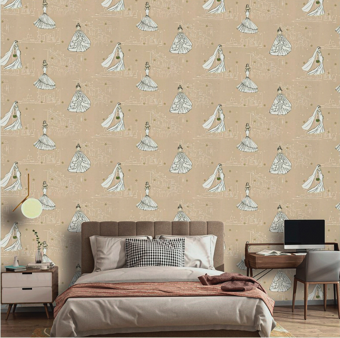 Бежевый цвет обоев придает помещению светлую и теплую атмосферу, а мотив невесты Jolly добавляет игривости и радости, напоминая о детстве и волшебстве. Стильные и элегантные обои отлично сочетаются с любым интерьером, создавая уникальный и неповторимый дизайн.