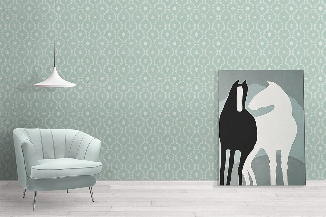 Зеленый цвет обоев придаст помещению свежий и яркий вид, а мотив узоров Jolly добавит игривости и оригинальности. Раппорт в 64 см обеспечивает гармоничное сочетание узоров при их склейке, создавая единый и красивый образ.